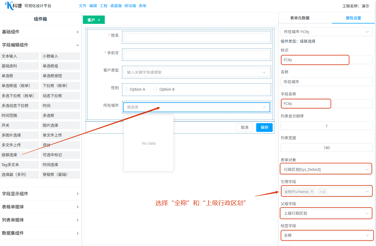 本节介绍如何给表单添加一个级联选择器,用于选择所在城市