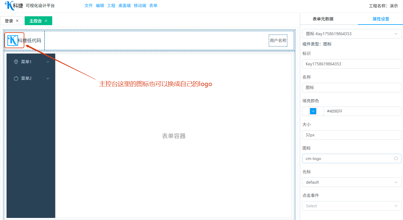 打开登录表单更换 logo 图标