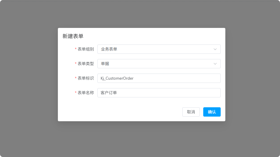 1、新建“客户订单”单据表单