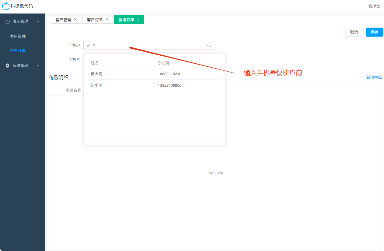 新增客户订单,并选择客户
