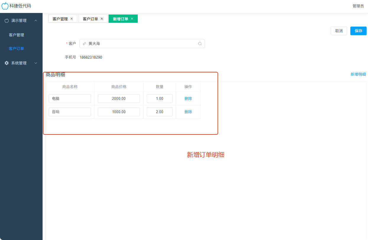 新增订单明细