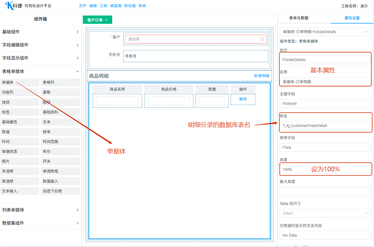 本节介绍如何制作带有订单明细分录的单据表单