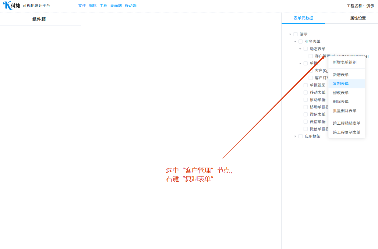 复制“应用框架”里的“角色管理”表单,不同单据列表显示结构差异不大,可以复制后再做调整