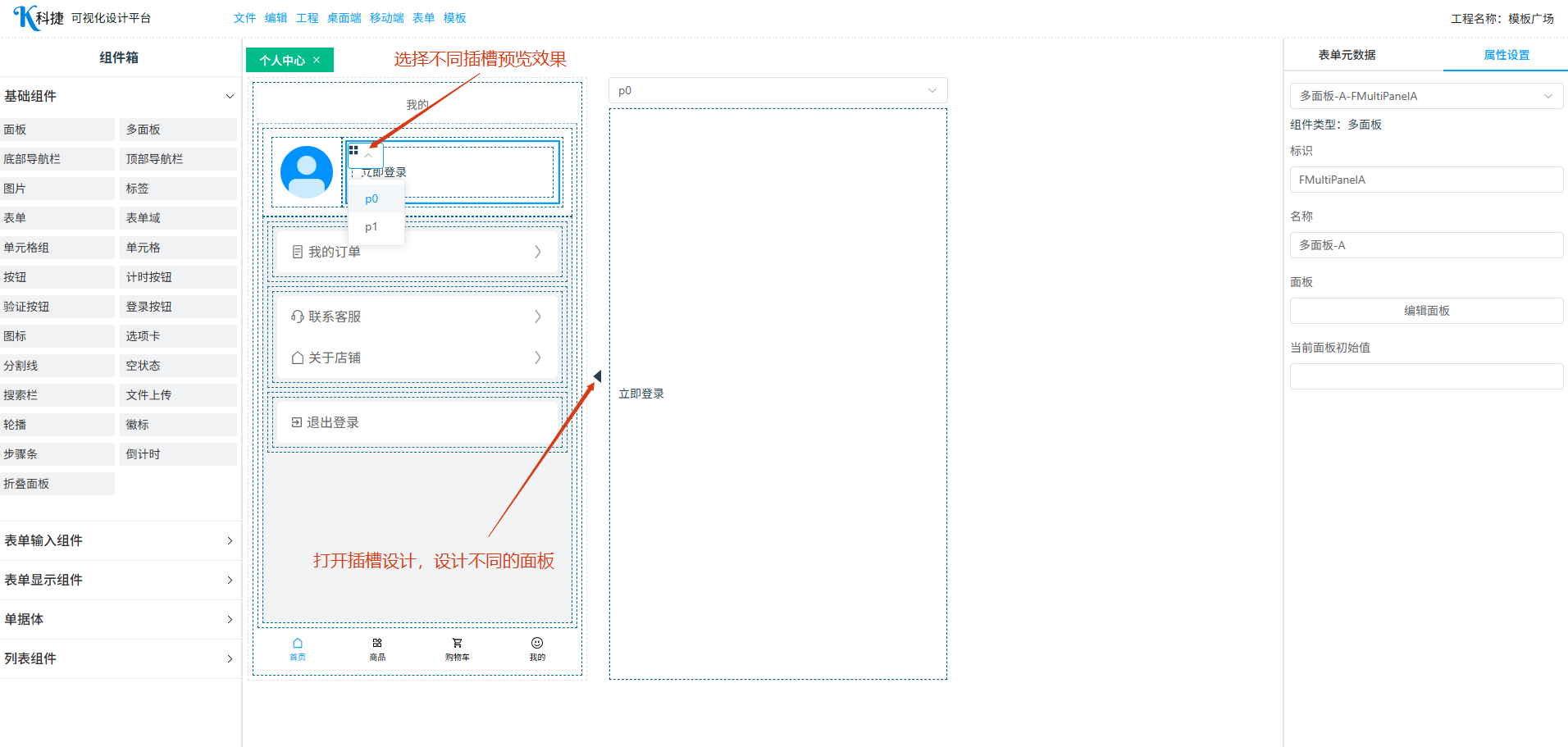 业务插件多面板的激活面板